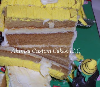 I used my own vanilla cake recipe and simply folded in some orange zest right before pouring it into the pan, along with a little pure orange extract. I iced and filled the cake with orange-vanilla frosting, again just adding a little orange extract to my vanilla frosting, to taste. (I posted a simple frosting recipe on the recipes page). Any vanilla cake recipe should work, but please don't use a box mix...scratch baking is so much easier than people think, and the results are worth it! All you need is a solid recipe and a little know-how...and (while they mean well), try not to take vegan baking advice from non-vegans...I don't give advice on how to roast a rack of lamb. ;o)